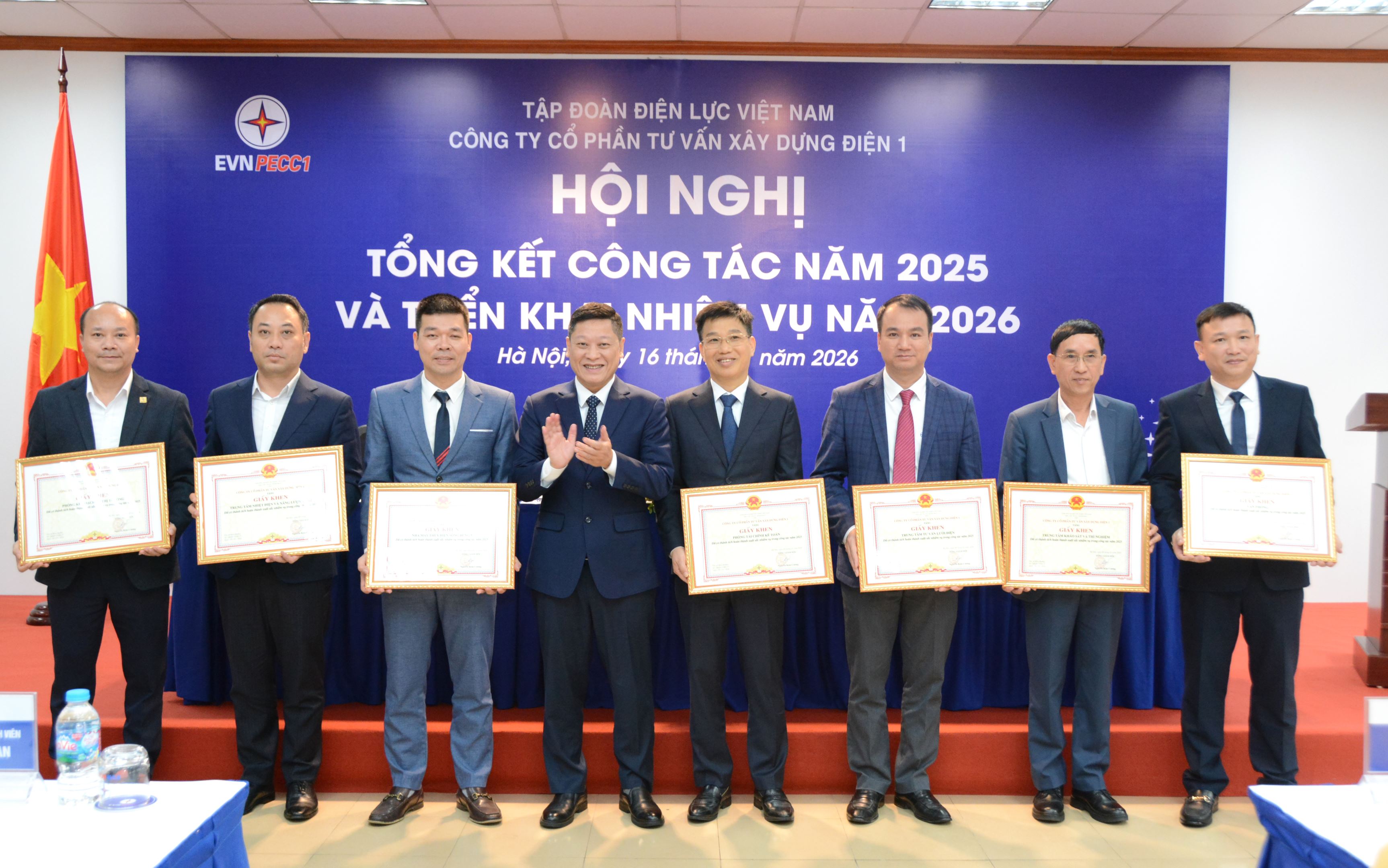 Cùng với đó, EVN đã tặng Giấy khen cho 02 tập thể gồm Trung tâm Tư vấn Lưới điện và Trung tâm Nhiệt điện và Năng lượng mới, cùng 10 cá nhân tiêu biểu của Công ty, trong đó có Chủ tịch Hội đồng quản trị, Tổng Giám đốc và các cán bộ quản lý, chuyên gia kỹ thuật. Đây là sự ghi nhận xứng đáng đối với tinh thần trách nhiệm, nỗ lực và những đóng góp quan trọng của các tập thể, cá nhân trong việc hoàn thành xuất sắc nhiệm vụ, góp phần vào thành công chung của PECC1 và Tập đoàn Điện lực Việt Nam.