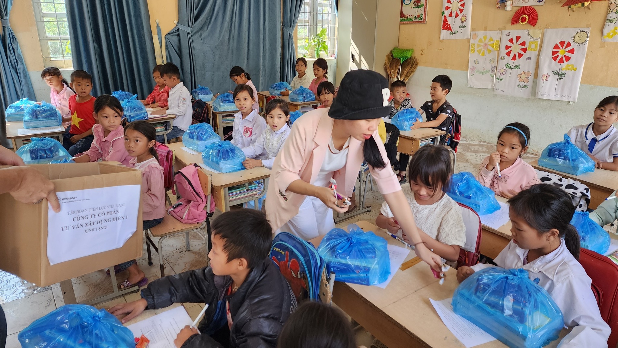 Với tấm lòng tương thân tương ái, đồng cảm, sẻ chia, Công Đoàn Công ty đã đến thăm, động viên và tặng nhà trường những món quà từ tập thể Công Đoàn công ty, từ toàn thể các cô chú, các bác là CBCNV EVNPECC1 đến các cháu nhỏ có hoàn cảnh khó khăn nhưng luôn nỗ lực, khát khao vươn lên trong học tập. Phần quà gồm 18 thùng vở ( mỗi thùng 160 quyển vở ô lý 48 trang), 530 hộp bút bi chữ A; Bánh kẹo phát cho các cháu trên lớp.